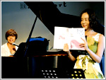 2012年8月11日(土)四谷天窓comfortにて。お昼の部のライブに出演させていただきました。 今回は今年4月に発売された女声合唱とピアノのための組曲「あなたへのうた」を、作詞を担当した栗原寛さん(以下くりちゃん(笑))と演奏させていただきました。 いつもわたしは、ひとりでピアノ弾き語りをしているのですが、今回はほとんどくりちゃんがピアノ伴奏をしてくれたので、珍しくウタだけに専念することができました。 いつもとは違う立ち居地でのライブ。とても楽しかったです。 夏休みの暑い中、会場にお越しくださいましたみなさまにあたたかくむかえていただき、ライブはスタートしました。 |